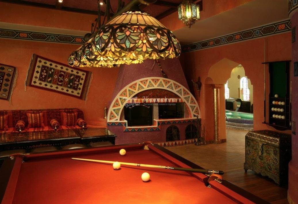 Камин, кальян, караоке, бильярд, комнатат отдыха, бар.